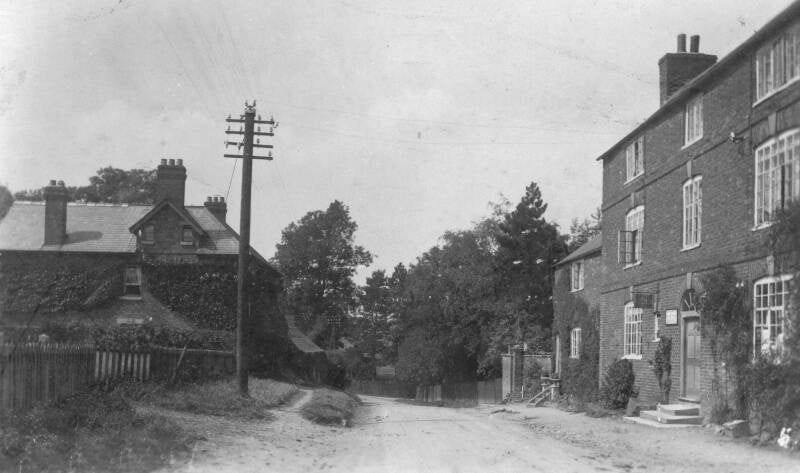 The former crossroads, note the village pump on the corner by the telegraph pole